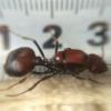 5. Color, hue, pattern and texture: Dark red head and legs. Very dark red--almost black thorax and gaster.