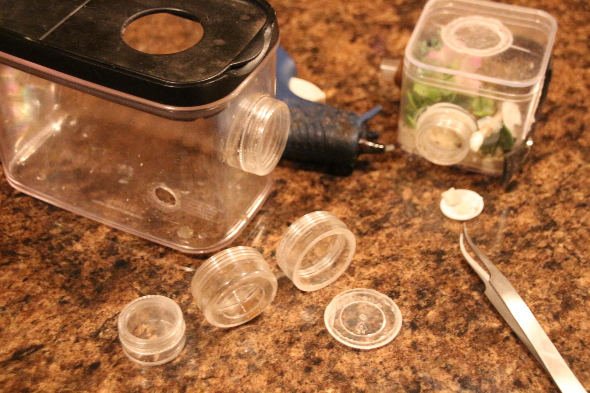 Most of the larger containers I use are made for storing food products and I get them at the Loblaws grocery store. The small clear plastic containers I find at the Michael's craft store. I get a lot of the smaller items like rubber stoppers, eye droppers, test tubes, and tweezers at a surplus store that carries a variety of chemistry supplies. I bought the 100-mesh stainless steel screen on Amazon.