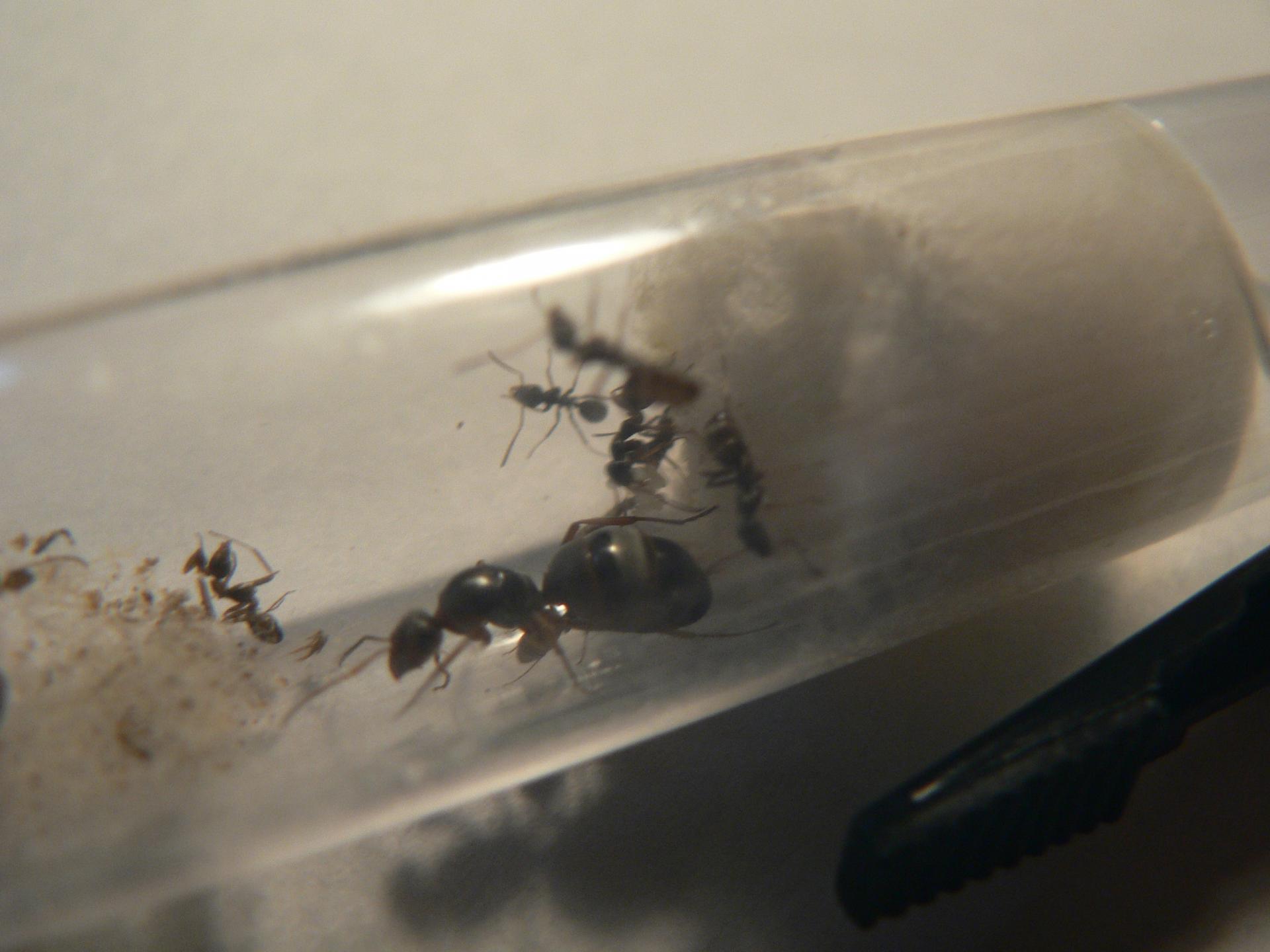 Ok, so here is my journal on my still small but rapidly growing tetramorium colony. Immigrans, I believe, but do correct me if I am wrong. So, originally, this colony was an experiment. You may notice the two bigger ants in the picture.P1040472.JPG