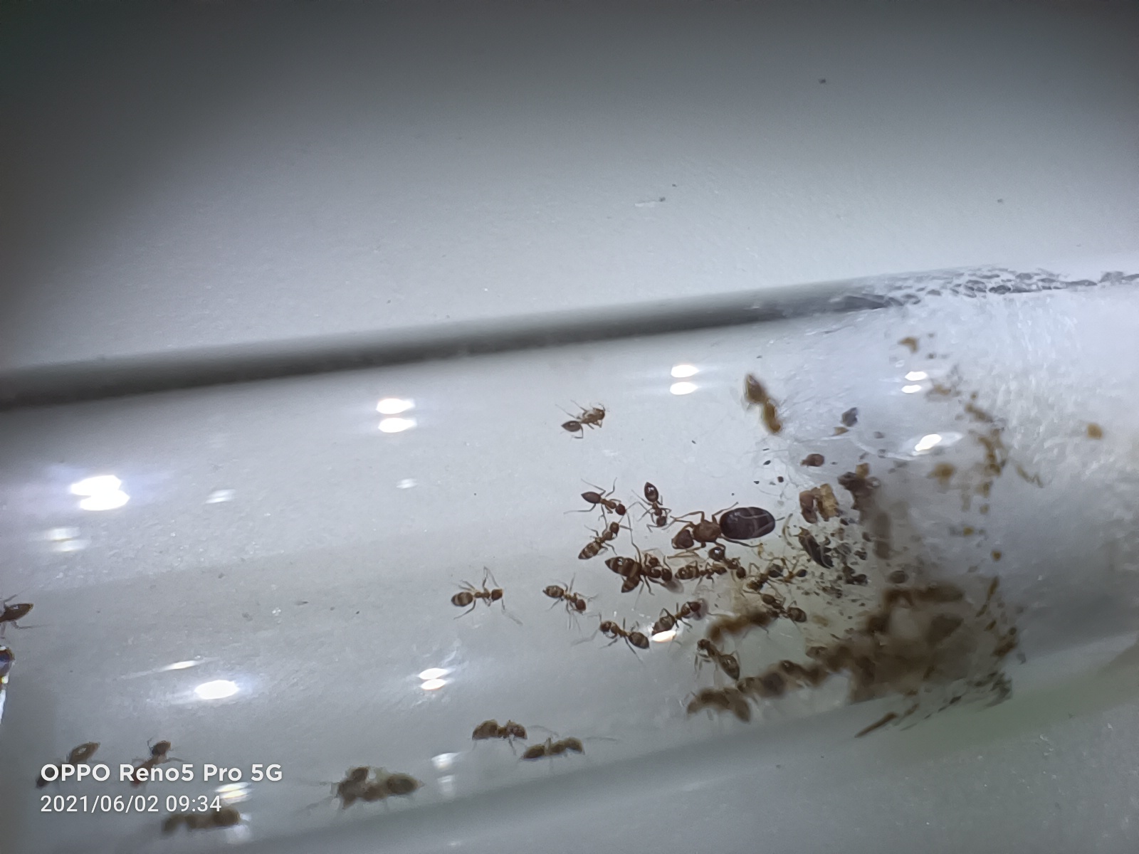 I'm raising up a new colony to sell. They currently have about 20 workers and a good brood pile. They got set back a bit when a bunch of the first nanitics died off for some reason, but they are recovering nicely.