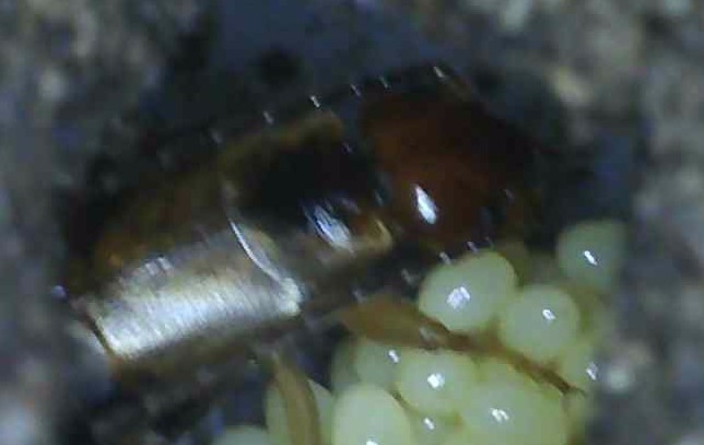 A few weeks ago i flipped a rock and found both a male and a female earwig i got a small container, filled it with dirt, and moved them in. O left them alone for a few days and by then they had laid eggs, i asked TennesseeAnts via discord what to do, they told me to seperate them. and about a week later i took these pics: