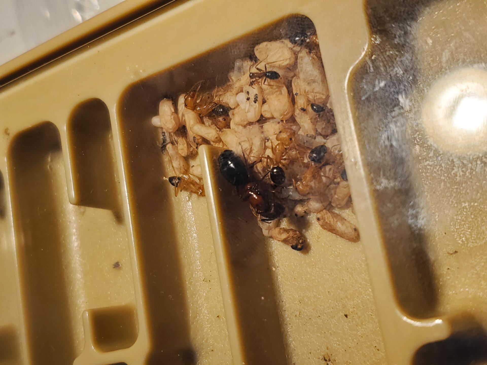 Anyway I put her in a XL testube and tossed her into the droor. No wait I didn’t toss her lol. Anyway a week later she had 13 eggs (counted). 1 week after that they hatched into small larvae. And that where I am at now. I heard a lot about that it would be best for me to heat her up a bit to make the larva's growth speed up. I don’t like heating cables but I do have a bearded dragon cage that I like putting my grown colonies there but the light is ok for them because it doesn’t stress them out as much as I think this queen would be. So if you guys could vote above wether or not to place the queen in the heat ant get stressed because of the light. Thank you! I will be updating this journal August 10th and will be replying to people before the 10th. Bye! Be uploading pics tommorow.