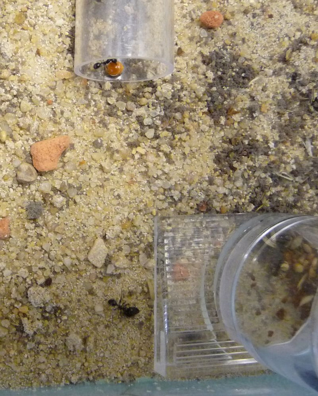 So I tried out the banana powder-paste and the insect paste with my Messors, and yes of course, the ants are pigs when it comes to food, they actually eat it.