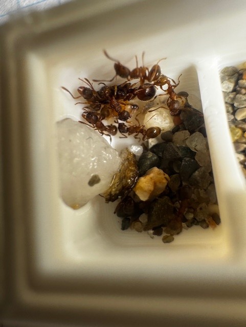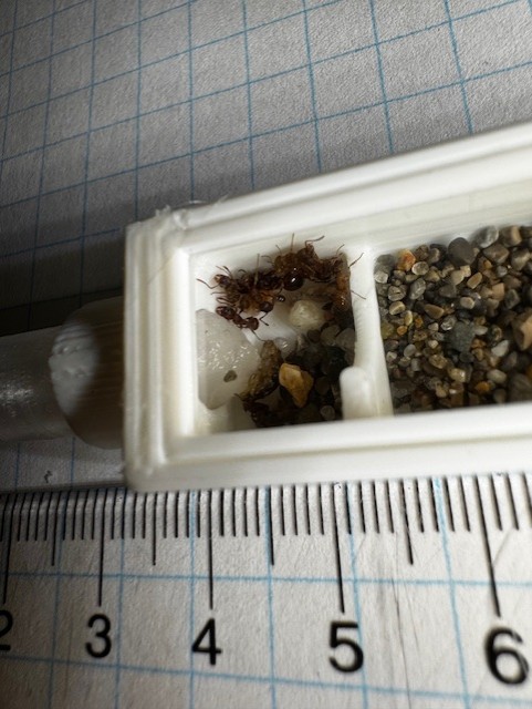 The colony I have in the nest is my Myrmica ruba sp. They are still growing and have a pupa but I don't feed them much protein because they need to overwinter soon, not to mention I need to get them packaged and send them to a fellow ant keeper here in the forum.